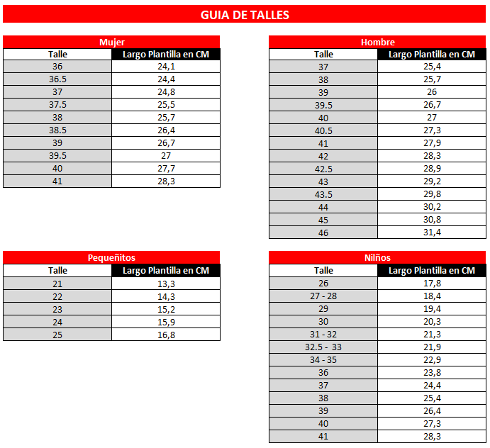 Si la medida queda entre dos talles, te recomendamos elegir el talle más grande, especialmente si usás plantillas, valvas u ortesis